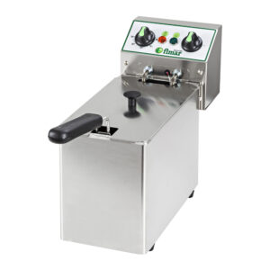 Équipement : panier à poignée amovible, thermostat de régulation très précis (0-180 °C), thermostat à bulbe inox double sécurité en cas de surchauffe ou d’insuffisance d’huile, minuterie, bouton chrome, voyants de contrôle.
